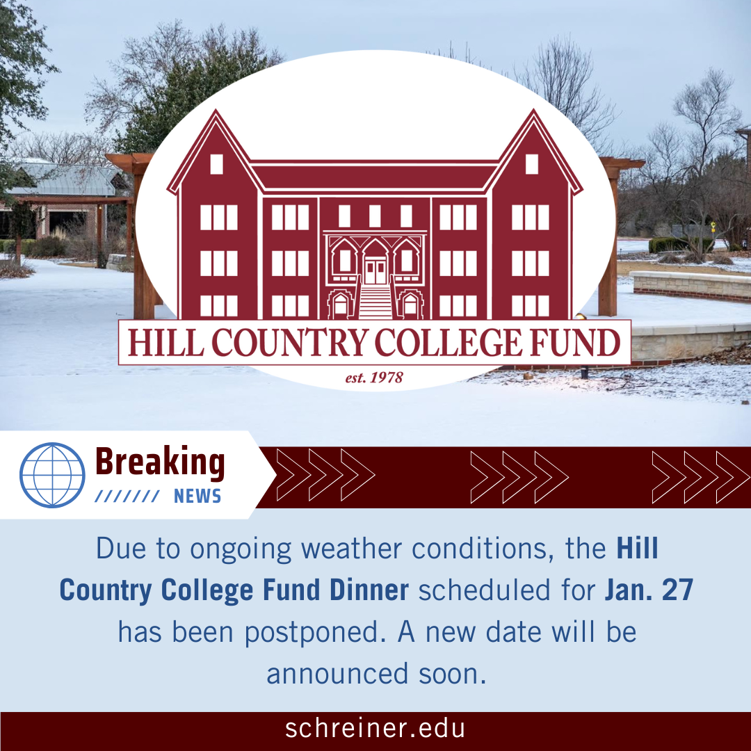 Hill Country College Fund Dinner Postponed Due to Ongoing Weather Conditions